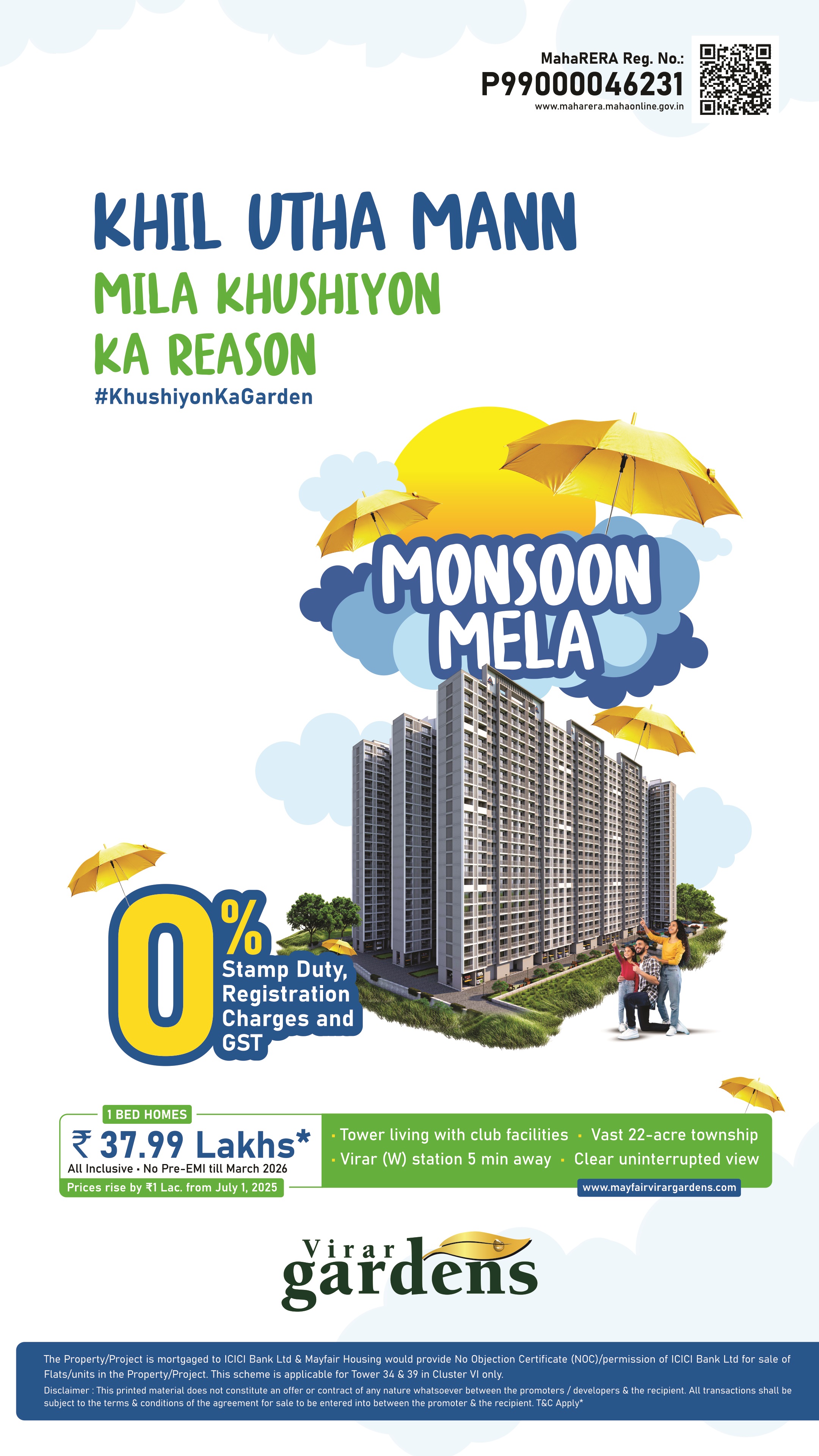 Mayfair Total Homes Virar West Project will be constructed on 22 acres of land parcel, 7 towers with G+22 floors having 1 BHK premium residences. Mayfair Plus Homes located Near Bolinj Naka, Virar West, Mumbai with Old Viva College - 1.9km, Virar Railway Station - 2 km, D Mart - 2.4km. Mayfair The Promenade Virar West Project Internal amenities likes of Vetrified Tiles, Granite Kitchen, Modular Kitchen, Earthquake Resistance, Kitchen Platform, SS...
