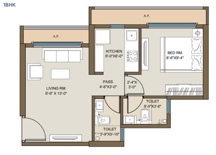 1 BHK 363 sqft ₹ 35.99 Lacs (All Inc)